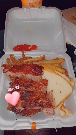 Talk about paranoid. This place still offers no dine-in and requires masks. Anyways, let's talk about the Q. I ordered the pork rib plate that comes with 2 sides (I chose potato salad and onion rings) and 2 slices of bread. The sides were fine and the ribs were actually pretty good. They were fairly tender and they give you a large portion for the price. The equivalent of about 6-7 bones. I guess my only complaint is the sauce. It's bit too tangy for me and definitely on the thin side, like not nearly thick enough to stick to the ribs. I think on future visits I will ask for sauceless ribs and just put on my favorite commercial sauce. But some folks may like their house sauce so try it for yourself.